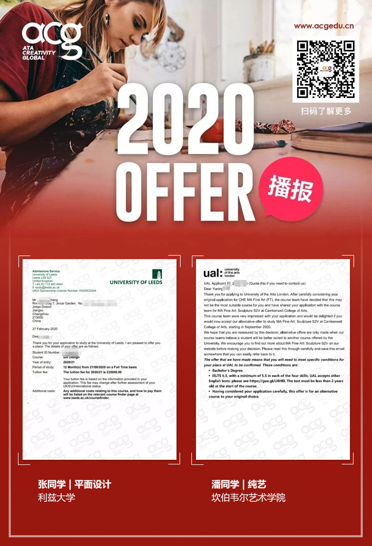在過去的2&3月份,ACG學員就陸續(xù)收獲了各大院校的錄取offer達到6500+。其中包括UAL、GSA、AA、KingstonGoldsmiths、愛丁堡、Parsons、RISD、Pratt、MICA、SVA、Calarts、哈佛大學、康奈爾大學等院校。