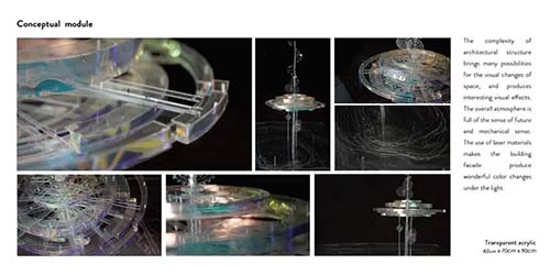 T:其實(shí)大部分項(xiàng)目我都比較滿意。個人最喜歡的是漂浮水母潮汐探測中心吧。最早的靈感來源于大海,因?yàn)槲页錾卦谘睾3鞘猩钲?,?jīng)常會到海邊散步,有次看到潮漲潮落就突然想做一個和潮汐能源相關(guān)的可持續(xù)發(fā)展項(xiàng)目。