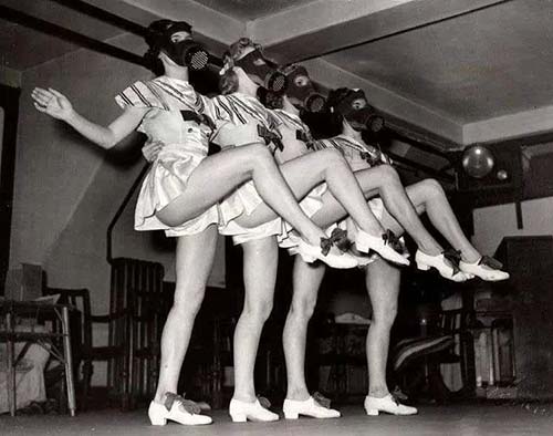 頭戴著防毒面具登臺(tái)表演的倫敦艷舞女郎