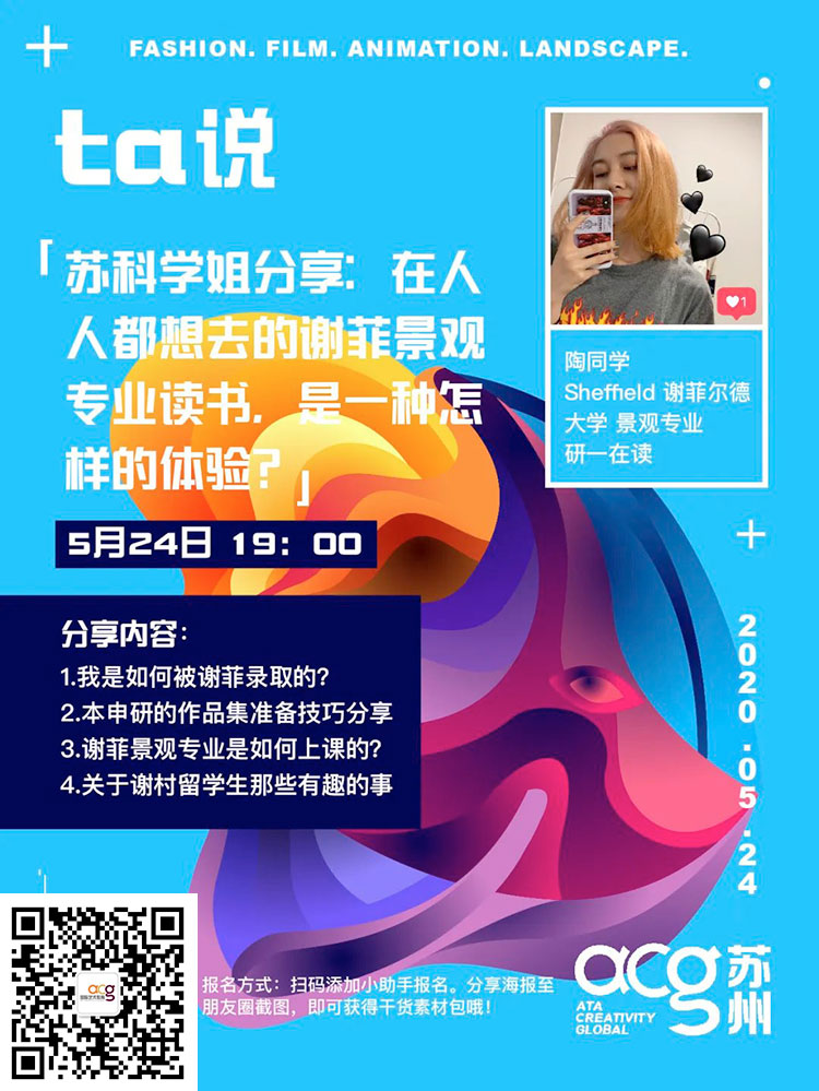 關于「藝術(shù)留學生活」你有過怎樣的幻想呢?本周四至周日 每晚19:00,ACG蘇州集齊四大名校LCF、UCL、RMIT、Sheffield,邀請學長學姐組團開講和你暢聊申校&留學那些事兒,一起來看最真實的藝術(shù)生留學生活!