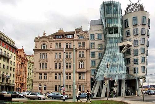 跳舞的房子,由蓋里和弗拉多·米盧尼克合作設(shè)計(jì)而成。這是一座典型的解構(gòu)主義建筑,外觀相當(dāng)奇特,尤其轉(zhuǎn)角處不規(guī)則狀的雙塔,仿佛一對男女在共舞。