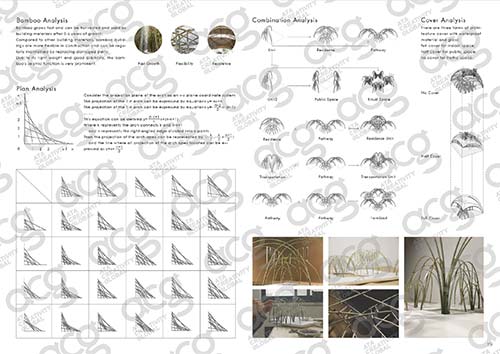 作業(yè)原型是竹子單體建筑,以此為靈感來源,最終將原先的單體經(jīng)過組合重構(gòu),構(gòu)成巨大的人類居住群落,以適應(yīng)地震多發(fā)區(qū)域建造。