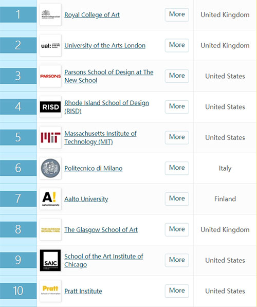 QS每年會(huì)根據(jù)學(xué)術(shù)聲望、教職員論文引用數(shù)、師生比例、雇主聲譽(yù)、國際教師比例和國際學(xué)生比例來評(píng)定每所院校的排名情況。2020QS全球藝術(shù)設(shè)計(jì)類排名,倫敦藝術(shù)大學(xué)來到第二位。