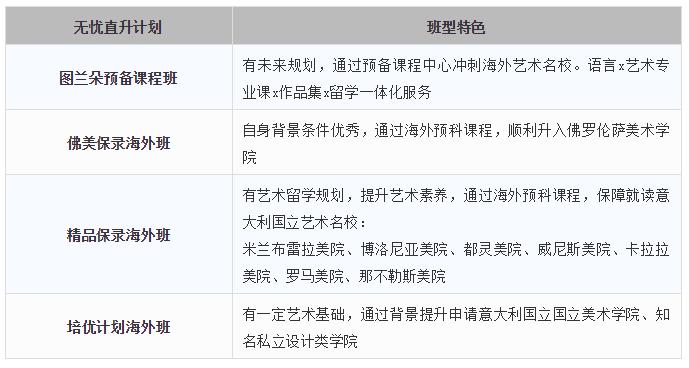 為學(xué)生提供直升無(wú)憂(yōu)計(jì)劃,保障學(xué)生完成預(yù)科項(xiàng)目后 順利入學(xué)意大利多所頂尖藝術(shù)院校。