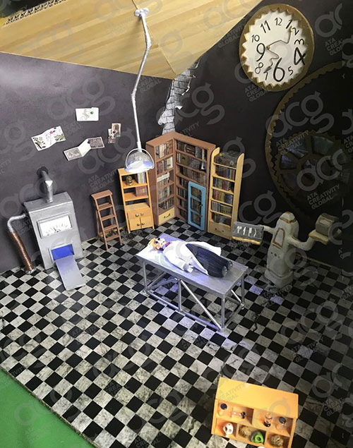 一開始Mia并不是我主線的學生,和李老師做定格動畫前期時,對她的第一印象就是這個姑娘手巧心細,在工作室里模型一做就是一整天,而且非常注重細節(jié)。后來因為李老師馬上要生寶寶,定格動畫的拍攝和后期部分就委托于我來帶她完成。印象比較深的是,因為她的第一場鏡頭是在暗環(huán)境下拍攝,模型自備的小燈泡光線強度不夠。讓我倆犯了難。后來突然想到另一個學生做完項目后遺留在角落的聚光燈手電,試了之后發(fā)現(xiàn)效果太好了,現(xiàn)在回想起來,我都覺得我倆那天真是歐氣爆棚了哈哈。