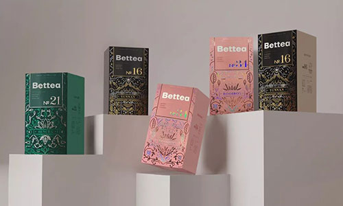 Bettea的茶包主要的設(shè)計(jì)重點(diǎn)是結(jié)合單線插圖和數(shù)字3D箔,其全息圖的顏色會(huì)根據(jù)視角而變化。