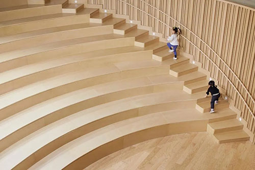 幼兒園還設(shè)有圖書館、小劇場和體育館。