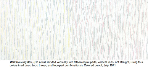 當我們回到文字的功能性,會發(fā)現(xiàn)語言是藝術創(chuàng)作的橋梁。Sol LeWitt的畫都是以指令的形式去完成——與繪圖師溝通靈感與想法,繪圖師負責執(zhí)行,這一想法取代了藝術的創(chuàng)作過程,架起了新的橋梁。