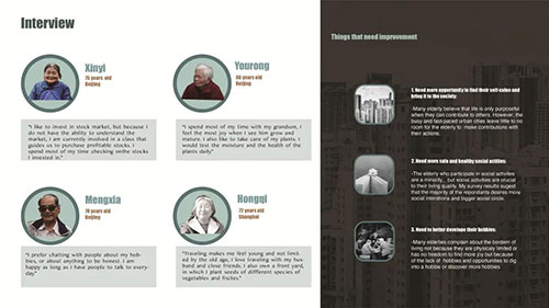 我的作品集兩個(gè)重要的項(xiàng)目都和“老年人”有關(guān),所以說我offer和獎(jiǎng)學(xué)金的軍功章,有一半得算到我奶奶頭上。我奶奶這個(gè)年紀(jì)的老年人在中國占很大一個(gè)比重,但是很少有人真正去關(guān)注老年人的生活,導(dǎo)致他們生活空虛,經(jīng)常被騙,所以我的兩個(gè)項(xiàng)目都在關(guān)注這個(gè)問題。
