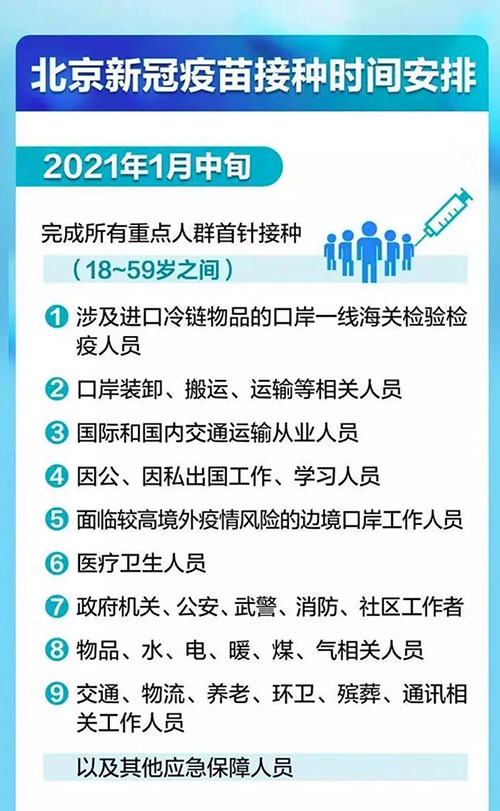 據(jù)新聞報道,近期主要是針對部分重點人群開展接種,包括從事進(jìn)口冷鏈、口岸檢疫、船舶引航、航空空勤、生鮮市場、公共交通、醫(yī)療疾控等感染風(fēng)險比較高的工作人員,以及前往中高風(fēng)險國家或者地區(qū)去工作或者學(xué)習(xí)的人員。
