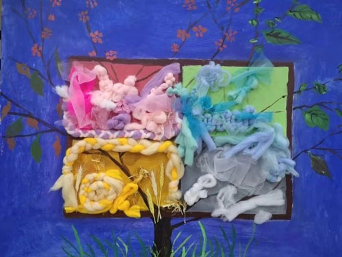 學(xué)生通過搜集資料,了解纖維材料,學(xué)習(xí)制作手法,根據(jù)主題從設(shè)計(jì)到完成成品,充分展現(xiàn)創(chuàng)造能力和動手能力。最終通過靜態(tài)展的方式展現(xiàn)出來。